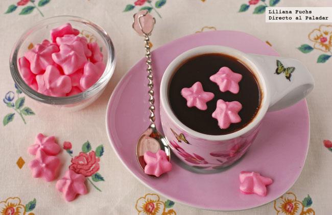 La base de esta especie de caramelos es la de un merengue sencillo, pero dándole más consistencia para conseguir una especie de glasa densa que, al secarse, nos deja unos bonitos bocados de lo más dulces. Los más golosos disfrutarán de ellos a cualquier hora como un capricho dulzón, pero a mí me gusta utilizarlos como decoración de otros postres. Aportan un bonito toque romántico a pasteles, natillas, mousses o una sencilla taza de espeso chocolate caliente.